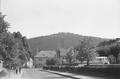 Žlutice (KV), náměstí, v pozadí hrádek nevděk